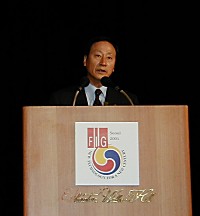 Vice Minister of the Ministry of Government Administration and Home Affairs giving his welcome greetings and inviting FIG to Korea in 2010.