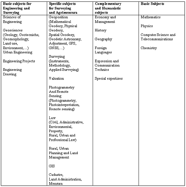 To fulfil the requirements of the professional profile, it was agreed that it would be of interest for the different governmental, academic and professional authorities to have a draft of a common core curriculum with subjects, which – as minimum - should appear in the different syllabuses.