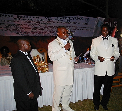 At the General Assembly Dr. B. E. Kwesi Prah was elected as the new President of GhIS for 2005-2006. The official handover of the Presidency took place at the Annual GhIS Awards Night at the Avion Club on the last evening of the week. More than 650 members with their spouses attended this traditional and memorable event. The keynote speech was given by Prof. Kwesi Audam, Vice Chancellor of KNUST. He told in his presentation about the new structure of education at this university that is becoming the leading university in Sub-Saharan Africa on information technology. Surveying and GIS have a special status in this development.