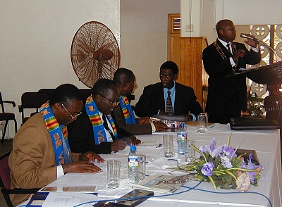 The Annual Lecture of the Ghana Institution of Surveyors. Mrs Matilda Esi Fiadzigbey represented the Ministry of Lands, Forestry and Mine - she is also a Past President of GhIS. At the podium the Council members and on the back Past Presidents of GhIS.