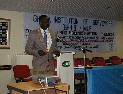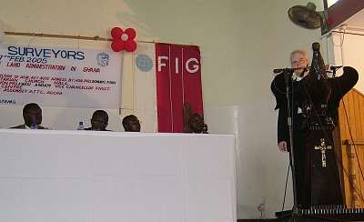 The FIG Council decided in Jakarta last October that the 5th FIG Regional Conference will be organised in Accra, Ghana in March 2006. It will be the first FIG Regional Conference to be held in Western Africa and the first FIG event in the region since the PC-meeting was held in Abuja in 1973. The Director, FIG office visited Ghana February 10-16, 2005 to plan the conference and its programme. The visit was linked to the 36th Annual General Meeting of the Ghana Institution of Surveyors (GhIS) and the Forum on Land Administration Project (LAP). The Annual General Assembly was the highlight of the surveying week held February 11-17, 2005. The programme of the week included the administrative meetings as well as a symposium round the land administration project that has been started in Ghana. The LAP is one of the biggest land administration projects in Africa and will take several years. The first five-year project has now been under way for more than one year. The focus that this preliminary stage has been on capacity building and pilot projects. The LAP is financed by the World Bank and several European development programmes.