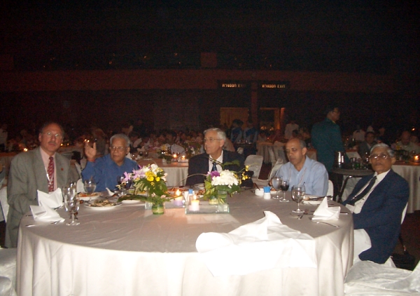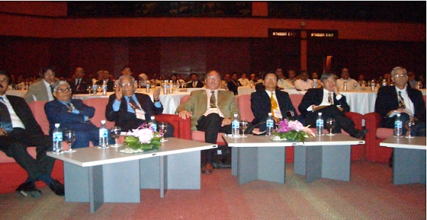 The speakers-row during the inauguration ceremony: (from right ISPRS Vice President John Trinder, Permanent Secretary of Ministry of ICT, Kraisorn Pornsutee, Lt. Gen. Vichit Satharanond, FIG President Holger Magel, President GIS Development Dr. M. P. Narayanan, Prof. A. R. Dasgupta, GIS Development Advisor.