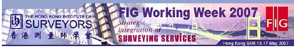 The FIG Working Week 2007 and XXX General Assembly was organised in Hong Kong SAR, China 13-17 May 2007. The conference was attended by more than 500 delegates from 64 countries. The Working Week was organised by the Hong Kong Institute of Surveyors HKIS together with FIG. The local organising Committee was chaired by Mr. Hak Chan and the Congress Director was the capable Ms. Winnie Shiu.