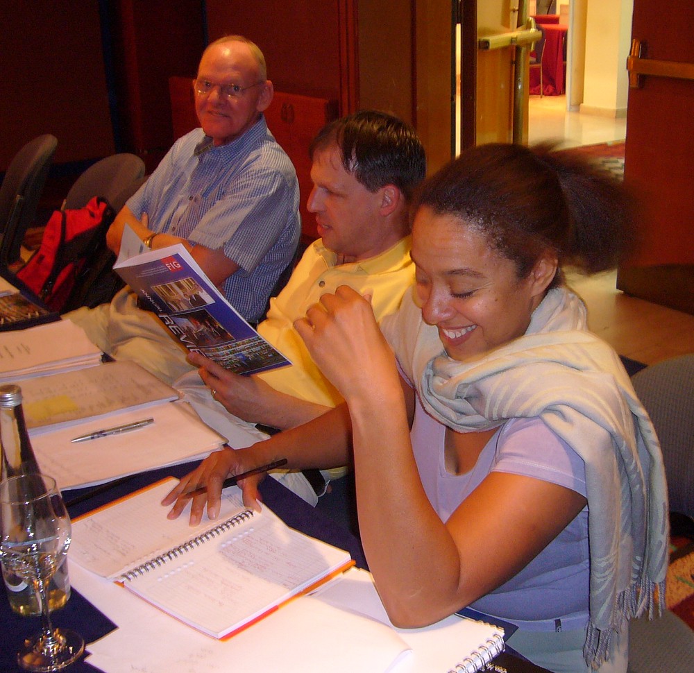 Diane Dumashie, Chair of Commission 8, Vice President Iain Greenway and President Stig Enemark.