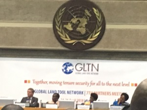 FIG Vice President participated in a panel discussion that addressed land tenure security issues for achieving sustainable development: new paradigm. She pointed out that "brilliant ideas do not come from silos"; GLTN is a diverse network and it is important that the partners have a deeper understanding of each other. The results need to be carried out both within the, now larger, network, and to a wider audience.