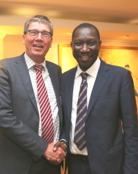 Frits van der Wal, Netherlands with Oumar Sylla, GLTN. The government of the Netherlands has been one of the larger donors and contributers for the GLTN Phase 2 implementation.