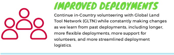 We are now scaling up, sustainably for the VCSP Way Forward. In the coming four years, our VCSs will be deployed to projects that improve equality in land rights across Sub-Saharan Africa, Asia-Pacific, and the Arab States. Alongside this, we are introducing e-volunteering on climate action projects around the globe for young surveyors who cannot travel as well as Wisdom Workshops for young surveyors who wish to become a Volunteer Community Surveyor. While volunteering, our young surveyors develop new soft skills which they can translate into their careers. They can also use their experience on the VCSP as leverage for working on humanitarian projects in their future because often, there is a requirement for prior experience.