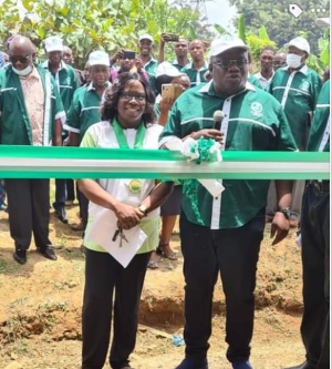 Global surveyors day is celebrated in Ondo State Nigeria. Branch Chairman Surv. Mrs. Helen Fakorede, fnis, and the Surveyor General of the State Surv. High Chief Adigun.
