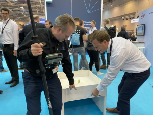 Tim Burch, FIG Working Week 2023, in talks with Leica representatives