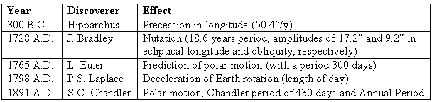 slowly (by about 2 ms per century) growing. The Earth axis also moves on