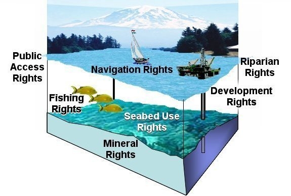 • Complex private and public interests: Private land interests frequently extend into marine space (e.g., rights for wharf development, littoral rights associated with upland ownership, traditional rights to areas for fishing through weirs). In many cases these rights are undocumented and have been acquired through traditional use. Furthermore, these rights are not usually well understood by planners, managers, and policy makers without a water law background. An additional complexity is that there are emerging or increasing interests such as the public right to access beaches and to have environmental protection of endangered habitats. Such public interests typically clash with private interests, and in many cases neither are well defined or documented.