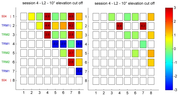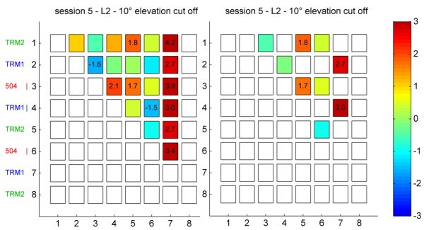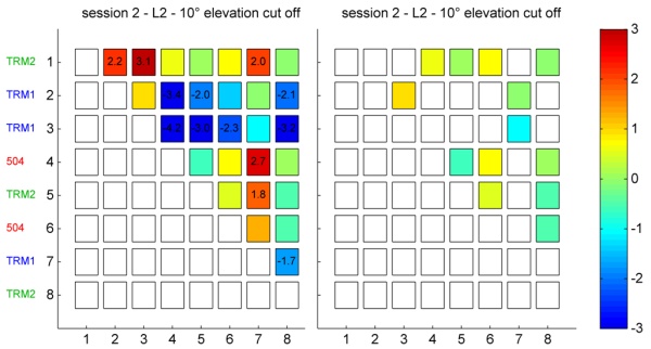 (maximal deviations), when using the L1 or the L2 frequency, thereby the