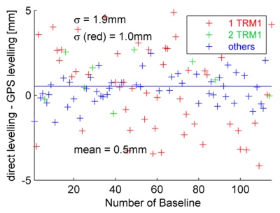 levelling. For this purpose 121 baselines between the 8 pillars of an