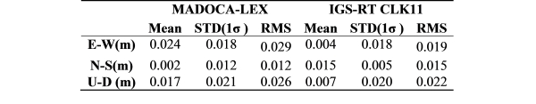 Table 3. Orbit and clock errors of MADOCA-LEX and IGS-RT products