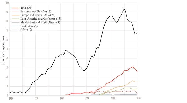 The World Bank has been financing land tenure projects for more than half a century. Over these five decades, the Bank has allocated more than US$3.1 billion to 92 standalone land tenure projects in 53 countries; the Bank has also financed at least 242 projects with significant land tenure components. Of these 334 operations, 47 are still active. These projects were mostly implemented in Latin America and Caribbean (LAC), East Asia and Pacific (EAP) and Europe and Central Asia (ECA), but also in Africa, South Asia (SA) and, to a lesser extent, Middle East and North Africa (MENA). During the 1990s, due to the increased recognition of importance of secure tenure rights for land markets, the Bank started implementing standalone land administration projects in ECA, Latin America and EAP that in total refer to an over US$ 2.2 billion commitment.