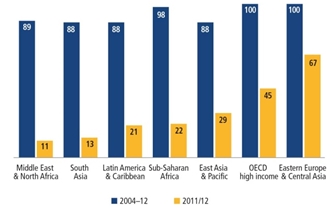 Figure 2. Eastern Europe and Central Asia had the largest share of economies reforming business regulation in 2011/12 (source: World Bank, 2013)