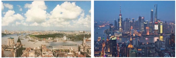 Figure 4. Shanghai in 1990 (left) and in 2010 (right) (source: Ong, 2012)
