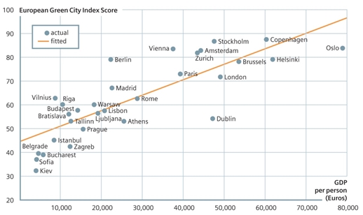 Figure 6. The link between wealth and environmental performance (source: EIU, 2009)