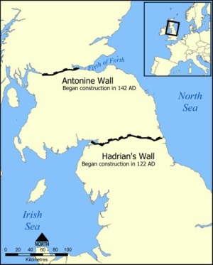 Fig. 11 Map showing the location of Hadrian’s Wall and the later Antonine Wall