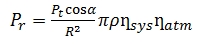 power as a function of the range is proportional to 1/R2 (R = range) in