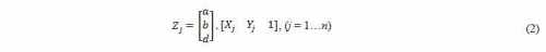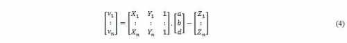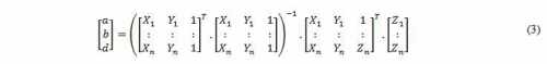 The sample equation system is given by the generic expression (2). The total number of equations (n) is equal to the number of 3D points selected in the PC.
