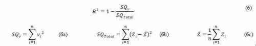 The measure of how well observed outcomes are replicated by the model can be given by the coefficient of determination R2, computed by (6), which refers the proportion of total variation of outcomes explained by the model.