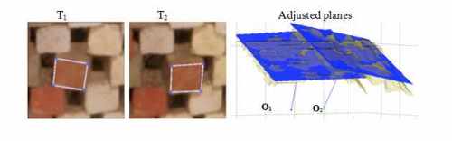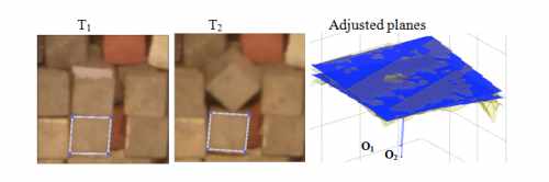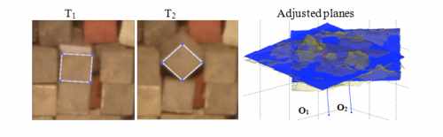 figure 6. The block unit moves to another location and changes orientation. Coefficient of determination of the plane adjustments: R2(1) = 91% and R2(2) = 90%.
