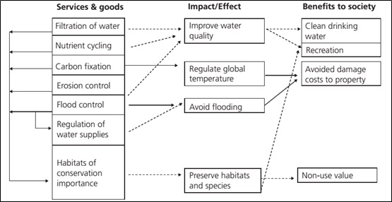 Figure 1. Wetland function-benefit interactions scheme (Defra 2007)