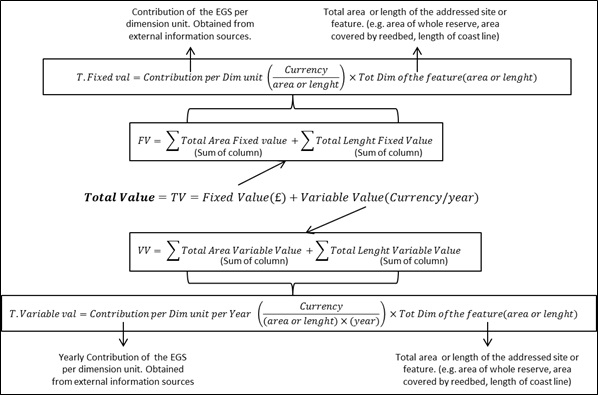 Figure 5. Set of formulas to estimate the Total Economic Value of the Ecosystem