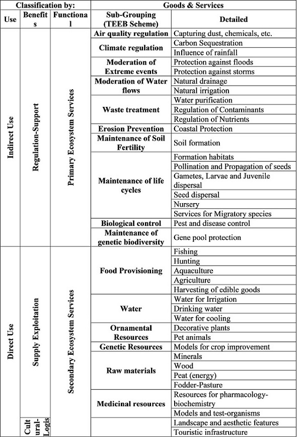Table 1. A comprehensive classification scheme for the ecosystem goods and services. (After Brett et al. 2015 and Liquete et al. 2013). Note that the categories included here serve as a general framework, and more categories could be added to the detailed column if additional services are found in a study area.