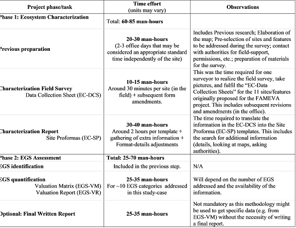 Table 3. Time-effort estimations for each phase during the FAMEVA project.