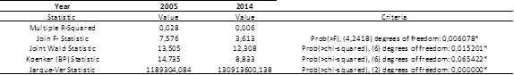 Table 2. Estimate OLS results for the representative variables from 2005 & 2014