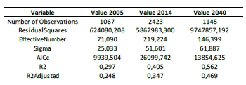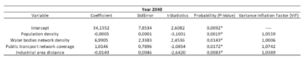 Table 4. Estimate OLS results for the representative variables for 2040
