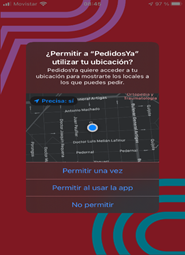 PedidosYa app when location use is requested. Source: Own elaboration.
