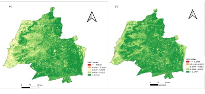Figure 8. Showing (a) NDVI Pre-flood period and (b) NDVI Post flood period.