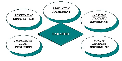 The cadastre provides the basis for disseminating land information to users and also provides accurate information for a range of land information data sets. The processes of cadastral surveying aim to preserve parcel boundaries in the cadastre and to improve the definition of those boundaries. They are fundamental to processes that provide spatial data and parcel attributes to the broader community beyond the traditional land market. 3. NATIONAL INSTITUTIONAL ARRANGEMENTS AND ISSUESFour key bodies provide leadership for various elements of cadastral reform at the national level in Australia: