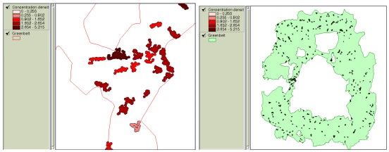 These are some of the problems to be handled in the future study and yet it is viewed that the proposed techniques including the concentration index and the AHP in the GIS environment help decision makers in creating and comparing different alternatives. By refining and improving the techniques, planners will be aided in narrowing down wide discrepancies among stakeholders.