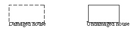 into the symbol (unbroken lines) for undamaged buildings and houses