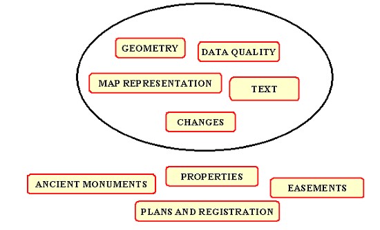 The interface will in the future be implemented for other kind of geographic information, for example buildings and addresses. UI 2000 gives the new perspectives. It is the objects, for example the plan, easement or the property, which is the base instead of the geometry. These perspectives facilitate integration of the map and the property register. Models of informationThe core in UI 2000 are the models of information i.e. a formal description of the data which will be included in the exchange. Nine models are processed: