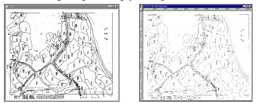 The result of the test is as followings. The computer system equipped the Pentium II -233MHz CPU and 128 MB RAM was used. The map was scanned at the resolution of 400 dpi and the size of a scanned map was 8000×6700 pixels.