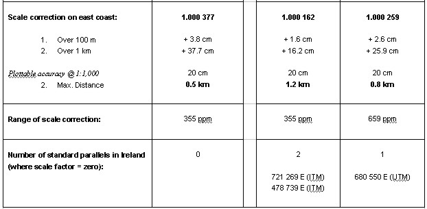 The third option produces two standard parallels and allows the magnitude of the scale corrections to be minimised throughout Ireland. Scale factor at a point is calculated from the formula:
