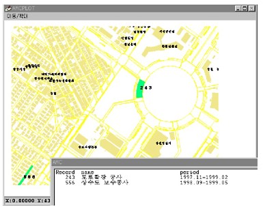 Construction management system consists of output system of a status of underground facilities and construction. For fulfillment of this system special relational table is designed separately. Figure 7 is an output of construction status.