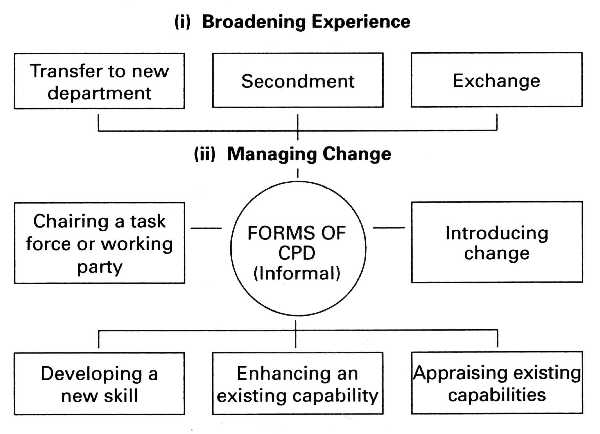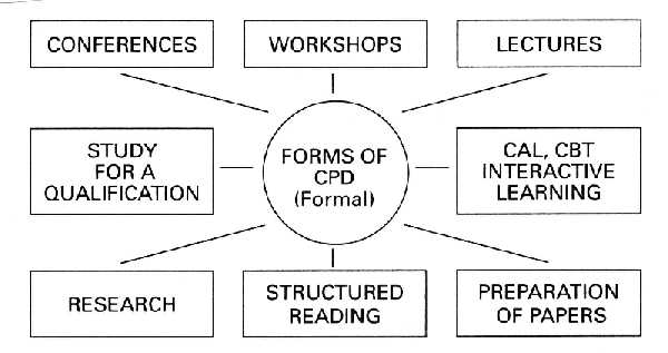 For all of these activities it is possible to specify a time limit to their execution. They can therefore be considered as discrete learning activities with defined start and end points. CPD must also, however, embrace the continuous nature of professional learning. Whilst not normally formally included within the requirements for CPD, the informal continuous learning which takes place within organisations should not be overlooked.