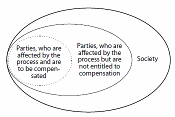 In practice this means defining in legislation the descriptions of non-compensatable losses for each base of compensation and consideration regarding the level of harm or nuisance, which should be tolerated without compensation. For example, a project may cause an increase in the level of noise, which however can still be considered normal for the particular environment (e.g. city) and does not cause a significant harmful effect on the value of the property of the affected party. If compensation thresholds are applied, the overall status of the affected party should however be considered (e. g. in cases where several thresholds apply) in order to prevent an unreasonable outcome for the affected party.