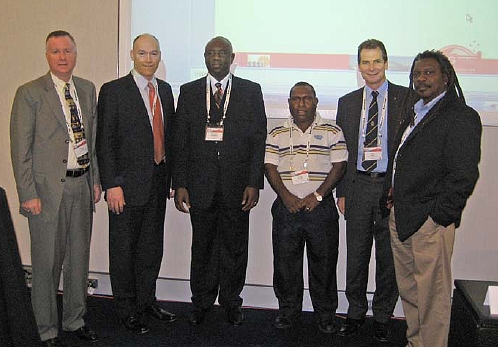Technical Session on Capacity Building and the Economic Benefits of Hydrography, XXIV FIG Congress, Sydney 2010. Left to right: Brian Connon USA, Gordon Johnston (United Kingdom), Olumide Omotoso (Nigeria), Joseph Kuanda (Papua New Guinea), Rod Nairn (Australia) and Michael Sutherland, Canada. © FIG.