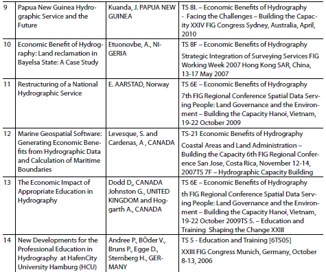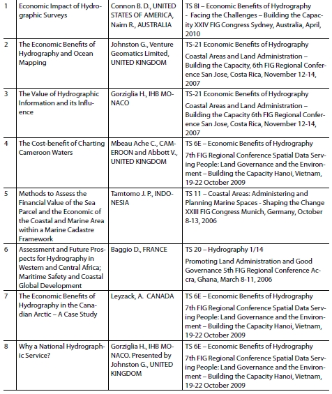 The papers listed in table 2 present case studies and examples of the economic benefits of Hydrography. These can be found in the FIG Surveyor’s Reference Library (http://www.fig.net/srl/), and may be accessed directly via the hyperlink provided with the outline for each in technical summary section of this document.