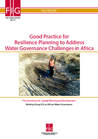 It is the purpose of FIG and its Commission 8 to assist the surveying profession in all aspects of spatial planning and development. This report considers some of the social, environmental, political and economic context of water governance in Africa to identify the strategies necessary in terms of resilience, in the face of climate change, population growth and diminishing resources. Cross-cutting socio-economic, systemic and policy challenges in water governance are analysed and critical success factors for managing water resources in Africa are described. In response to the expected impact of climate change the need for strategies to enhance future resilience in water governance is apparent.
